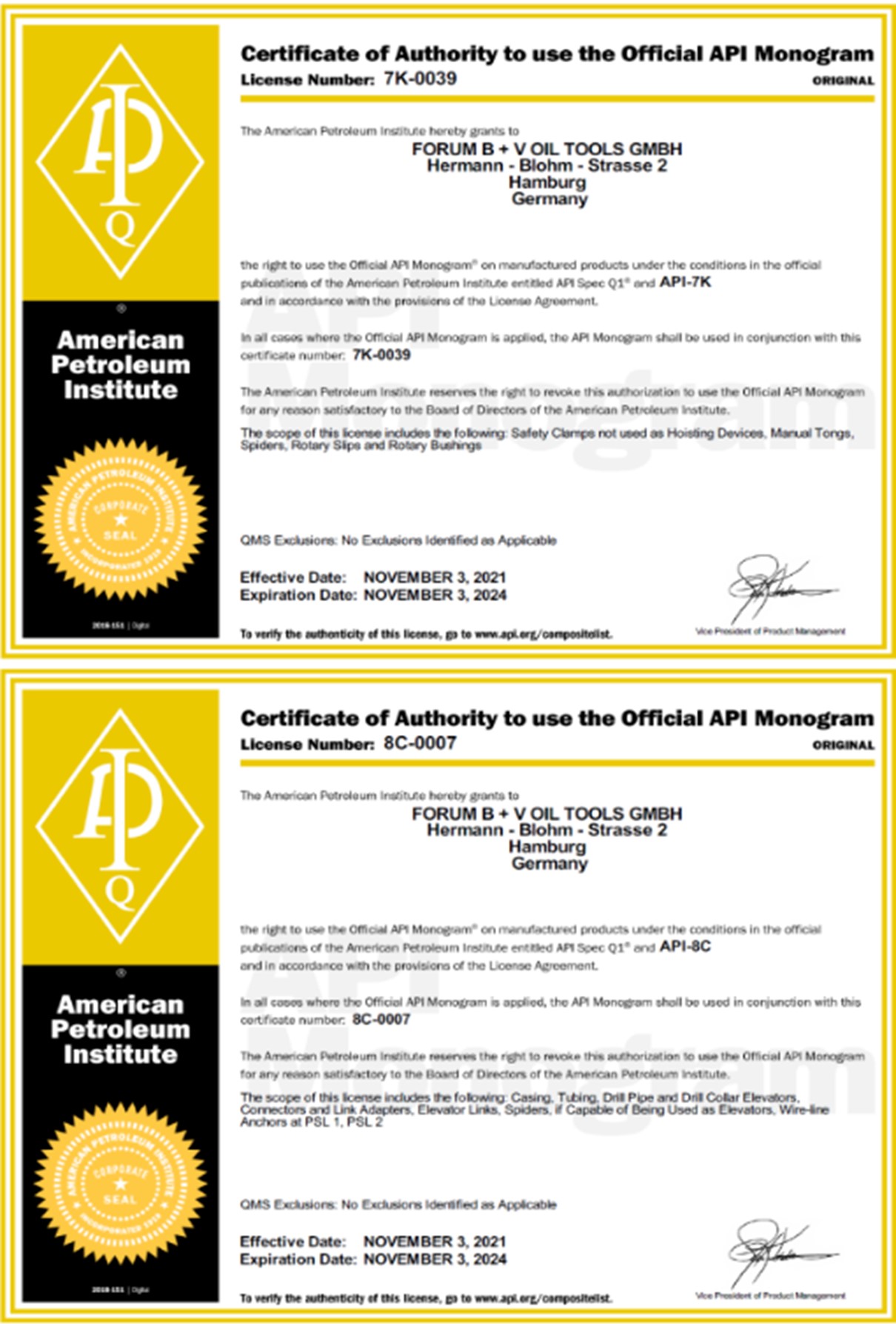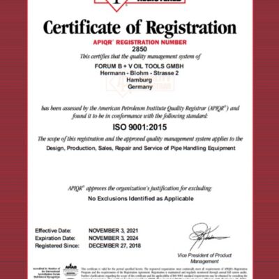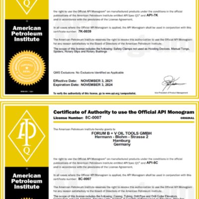 Elevator Links up to 720” long & up to a capacity of 1,500 Tons